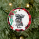 Schnauzer ornament with red buffalo background and Christmas garland and bow - Art was hand painted by me and made available as this adorable ornament! Add any text (suggested: "I ❤️ my Schnauzer" or your sweetie's name)