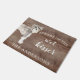 Funny beware of the wet kisser" Schnauzer Dog door mat set on a rustic faux background. Visit our shop to view a large assortment of dog breads