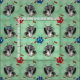 A Schnauzer with a scattering of bones and paw tracks. This design is intended to tile seamlessly.