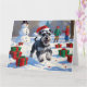 A spirited Schnauzer runs happily through the snowy winter scene, wearing a festive red Christmas hat. This lively design highlights the breed’s distinctive beard, wiry coat, and loyal personality while capturing the warmth and joy of the holiday season. A cheerful winter moment full of festive charm.
