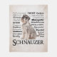 This Schnauzer fleece blanket, featuring the personality traits of the breed, is a great gift for any Schnauzer lover.