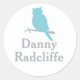 Help your child or teen find there things at school with these grey aqua owl silhouette full name id stickers for identification of books, lunch items and show and shares. Art and design by Sarah Trett.