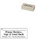 This classic rubber stamp design features the message "Please Review, Sign & Send Back", plus a line for a signature or initials to be written above. It also features a custom teacher or educator name. It might be used by a teacher, educator or tutor to ask a student’s parent(s) or guardian(s) to review and acknowledge the mark that a student received on an essay, a project, an exam, a paper, or some other school assignment.