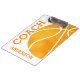 School Basketball Coach Personalized Retro Trendy Clipboard. Personalize this clipboard with your favourite basketball coach's name on both front and back. This watercolor style basketball is a vintage rugged design perfect for school basketball coaches. Design on both sides, text is in bold orange font easy to read against a white background. Change background to black by choosing CUSTOMIZE. A great gift for basketball coaches.