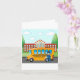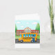 A school bus and its driver outside a school. This design looks really effective on these Greeting Card