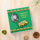 Green binder with yellow school buses. Hold onto your child's school work, report cards, photo's and more in this "School Days" binder. Customize with your own child's name and photo.