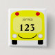 Customize this happy face school bus tag button badge with your child's name or class/teacher and bus number. You can modify or remove any of the text, change size or font to your own design choice.
