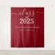 This minimalist and modern graduation backdrop/photo booth/prop tapestry features a burgundy background with the words "class of 2025" in elegant stylish font. Customize name and school name of your graduate. Easy to customize.