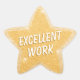 School education star stickers featuring a gold glitter background, sparkle highlights, and the words "excellent job" in a kid friendly shadow font.