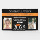 Fun sign featuring your congrats to the graduate in a classy and fun school colours theme, with their grad photos printed directly on the material. A beautiful graduation keepsake.