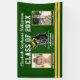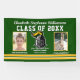 Fun design featuring your congrats to the graduate in a classy and fun school colours and school mascot design, with their grad photos printed directly on the material. A beautiful graduation keepsake.