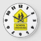 An authentic looking design of a school crossing sign. We have all seen these signs and they should be paid attention to. This design is a yellow school crossing sign. The top part has an image of children crossing and the bottom part has the words school crossing. This school crossing sign design looks great on this clock. Perfect for yourself or as a gift