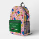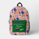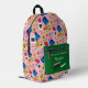 A fun backpack with a school theme that can be used all year round. This sturdy bag is great for books, sports gear, travel and more. It has a zipper pouch in the front, designed to look like a chalkboard, with an area for you to customize.