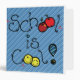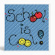 Cute text design saying School is Cool! Blue stripes background. Great for teachers or students.