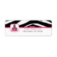 An address label for teachers featuring a background of zebra print across top with pink trim. Pink Schoolhouse logo inside pink frame at left. Personalize the pink and black text with your name and address. Matching items at The Pink Schoolhouse.