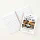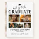 Modern graduation keepsake guest book featuring 6 photos of the graduate, the text "hats off to the graduate", their name, class year, a mortarboard, the inspirational quote "the tassel was worth the hassle", and a personalized message on the back that can be changed or removed.