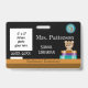 An elementary school librarian photo ID badge with a cute light brown bear peeking behind a stack of books . Beside the usual customizable fields , this one let you also add your school district seal or school logo (So the entire district will have matching identification cards .) You can add a lanyard or metal clip to your purchase if you wish to .