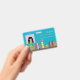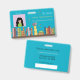 Fun teal photo ID badge for librarian media technician (or any other school staff ) , featuring a watercolor bookshelf illustration . Personalize it with the employee's info and photo . There is a spot in the back for the signature of the card holder or for a barcode sticker .