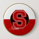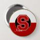 School Monogrammed Button, Red-White Letter S 4 Inch Round Button