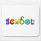Cute cartoon illustration of little boys and girls climbing over giant letters of the alphabet that spell out the word SCHOOL. Image available on various gifts and products. Mousemats. Mousepads.