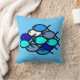 School of Christian Fish Symbols - Blue - Throw Pillow