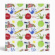 A teacher binder featuring a school themed design consisting of letters, numbers, handprints, a crayon drawing of a schoolhouse, pencils and apples.