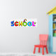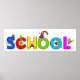 Cute cartoon illustration of little boys and girls climbing over giant letters of the alphabet that spell out the word SCHOOL. Image available on various gifts and products. Posters. Prints.