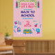 "School’s cool let’s rule" motivation quotes, back to school, 2nd Grade / Second grade, WELCOME / GRADUATION, BACK TO SCHOOL / I LOVE SCHOOL GRAPHIC DESIGN / Kids Party Decoration, Gifts, Colourful, Cartoon. Happy first day of School! Teacher Day, Gifts Graduation for boys and girls, Announcements Graduation, Student Life, Captions Graduation, Card, Teacher Messages, Graduation Ceremony, First Grade, Welcome, Graduation Decorations, Graduation Quotes. Modern Design with School Supplies Retro Hand Drawn icons, pencil, pen, brush, crown, schoolbag apple, books, notebook, Globe, school bus and more, on pink cute background - for two sides (front and back), with Smiley icon and text template. Personalize them by adding Date, School Name, Family name or wishes text.