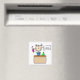 An adorable stick figure girl in the school science lab on a customizable magnet.