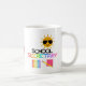 School Secretary in rainbow colours with happy sunshine sunglasses crayons note and pencil.