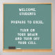 Welcome students "turn off cell phones" poster. Add or edit text to customize.