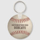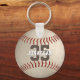 This baseball keychain features a dirty-looking baseball graphic with easily customizable school name and mascot name plus baseball player's name and jersey number in dark gray - by katz_d_zynes