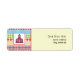 An address label featuring the logo of The Pink Schoolhouse inside white square outlined in pink at left. Background at left is rows of multicolored dots in various sizes. Personalize the text at right.