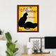 This is a French Art Nouveau inspired poster depicting Schrodinger's Cat. In English it says: Schrodinger's Cat, it's alive... its dead.