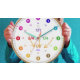 1. Das ikonische Farbsystem Das Herzstück ist mein patentgeschütztes Farbsystem. Jede der zwölf Stunden hat ihre eigene, feste Farbe. Das ist entscheidend: Kinder lernen Farben oft viel früher als komplexe Zahlenkombinationen. Wenn Du sagst: "Wir gehen los, wenn der kleine Zeiger im gelben Feld steht", versteht Dein Kind das sofort – ganz ohne Tränen oder Zeitdruck.