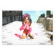 This design features a sad female cyborg in a sci fi pink outfit sitting on a bed of ice.