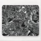 A beautifully detailed fractal with a futuristic sci fi look in black and silver on a mousepad.