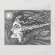 SCI FI SPACE WITCH & COMET CAT BLK/WHT HALLOWEEN HOLIDAY POSTCARD