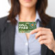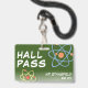 Ombre white and dark green school hall pass badge for science teachers. Cool colourful atom molecules design with customizable white text. Horizontal layout and lanyard attachment. Personalize it by adding your last name and classroom number. Great for back to school for elementary school teachers.