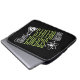 The sleeve is made of nice feeling material and seems very durable. I'm not sure how easy it'll be to clean, but the construction seems sound and the fabric is quick thick. I also like the double zipper. The printing is lovely and appears durable. The white on black contrast is nice, and the design very elegant.