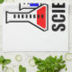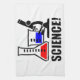 A product that shows excitement for science. The design shows a beaker with a blue chemical, a flask with a red liquid. A microscope sits to the right.