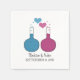 So fun and nerdy are these Science of Love Wedding Paper Napkins which feature a pair of beakers, one in blue and the other in fuchsia, with cute heart bubbles. This whimsical and unique design is perfect for that nerdy couple wanting something memorable that matches their quirky personalities! Easy to customize, simply add the details of your wedding day in the spaces provided. Click on the "Customize It" button to find additional personalization options.