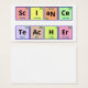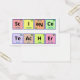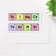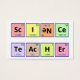 Carte de visite. Les mots "professeur de sciences" sont épelés à l'aide de symboles du tableau périodique des éléments. L'élément Neon (Ne) a été retourné afin d'obtenir les lettres requises pour le mot "science".