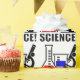 A product that shows excitement for science. The design shows a beaker with a blue chemical, a flask with a red liquid. A microscope sits to the right.