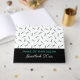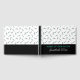Guestbook for a hair salon or hair stylist with a pattern of combs and scissors in black and turquoise, against a white background. Add the name of your salon and the year to both cover and spine.