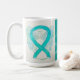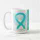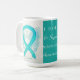 Scleroderma uses a teal awareness ribbon to show support for its awareness. This custom mug features teal awareness ribbon guardian angel art paintings with the message "I Hope and Support Scleroderma Awareness!" The custom teal awareness guardian angel ribbon art picture coffee cups or mugs can be customized with personalized messages to make great cause mugs for awareness fundraisers, awareness cup gifts, or other special events or cause support occasions. Make your own customized words for a personal message of hope and support to share!
