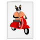 Vérifiez Boston Terrier montant son scooter vintage rouge ! Cette illustration de Boston Terrier serait des fans grande pour et de chien de même.