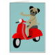 Vérifiez ce carlin montant son scooter vintage rouge ! Cette conception mignonne de carlin serait grande pour des fans de Vespa et de chien de même.
