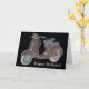 An original watercolor and ink painting of a scooter inverted as a negative image. Happy Birthday! is written beside the image.
