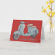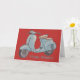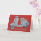An original watercolor and ink painting of a scooter on a red background. Happy Birthday! is written across the card.